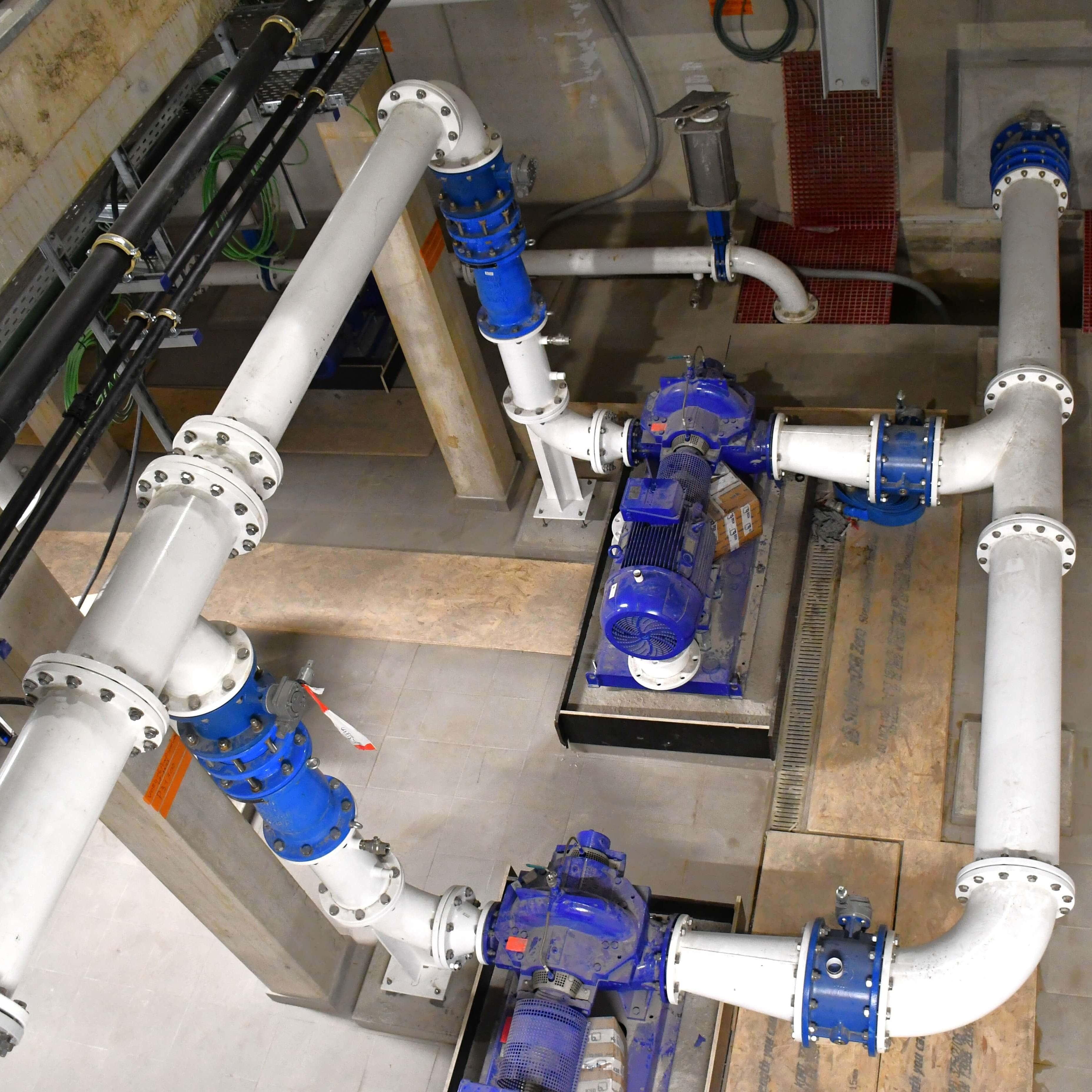 Avec des diamètres allant jusqu'à DN900, ce n'est en tout cas pas un travail évident. De plus, l'exécution des canalisations nécessite un traitement de velours. En effet, ils sont recouverts d'un revêtement blanc spécial à l'intérieur et à l'extérieur, qui ne nécessite aucun entretien et qui convient à l'utilisation d'eau potable parce qu'il ne peut pas dégager de substances nocives. « En d'autres termes, il s'agit d'une tuyauterie coûteuse qui ne doit en aucun cas être endommagée. C'est précisément pour cette raison que nous avons été autorisés à nous occuper de ce lot. Grâce à notre expérience dans le secteur de l'eau, nous disposons de l'expertise nécessaire pour procéder à l'installation et à l’ajustement avec précaution. Et nous savons ce qu'il faut faire pour poser des canalisations d'un tel diamètre en toute sécurité et de manière professionnelle à différents étages », explique Stéphane.